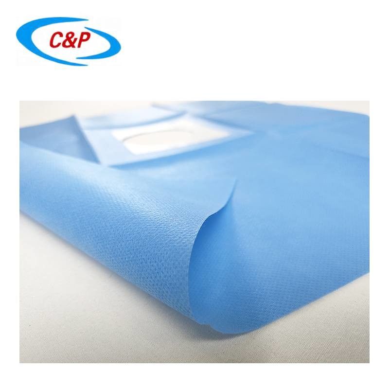 Disposable Surgical Drape designed to maintain a sterile environment in the operating room. This specialized medical drape features a fenestration (opening) that provides access to the surgical site while protecting surrounding areas.